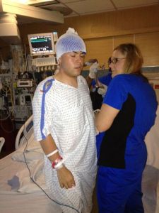 First: Adam has been able to speak much better and stronger, in fact he was able to carry on a conversation for a small duration.  A speech therapist came in and tested his verbal abilities along with certain memory items.  He did well!  Shortly afterwards an audio specialist came in to test his hearing.  There was a lot of people coming and going, pain medications were in the works so the test did not go well… not sure when we will retest to get a base line.