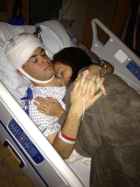Cindy giving Adam a hug the night before the surgery.. just before lights out.