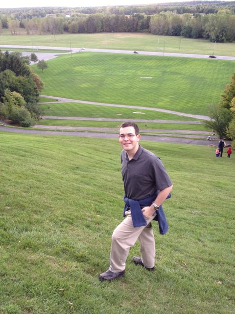 We headed outside to the hill… the grass was “real grass”…. not like we have in Florida.  It was a beautiful afternoon, the temperature was perfect and Adam was feeling his oats.  I showed him the switch back path that lead to the top and stated that we needed our exercise so lets climb the path… no not Adam.. he had to conquer the hill… so he took off running with a smile on his face.